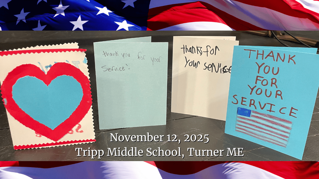 On November 12, 2025, members of Post 111 along with other community veterans met for a Veteran's Day ceremony at Tripp Middle School in Turner, ME.